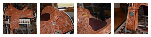 The finest gift that I have ever received is this saddle. Designed by Jeorge Osterman of Padise, Estonia. Jeorge is a great friend and a true artist. His work is impecable. His design hardware and engraving are second to none. Jack Brainard